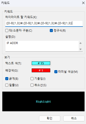 XShell 하이라이트 설정