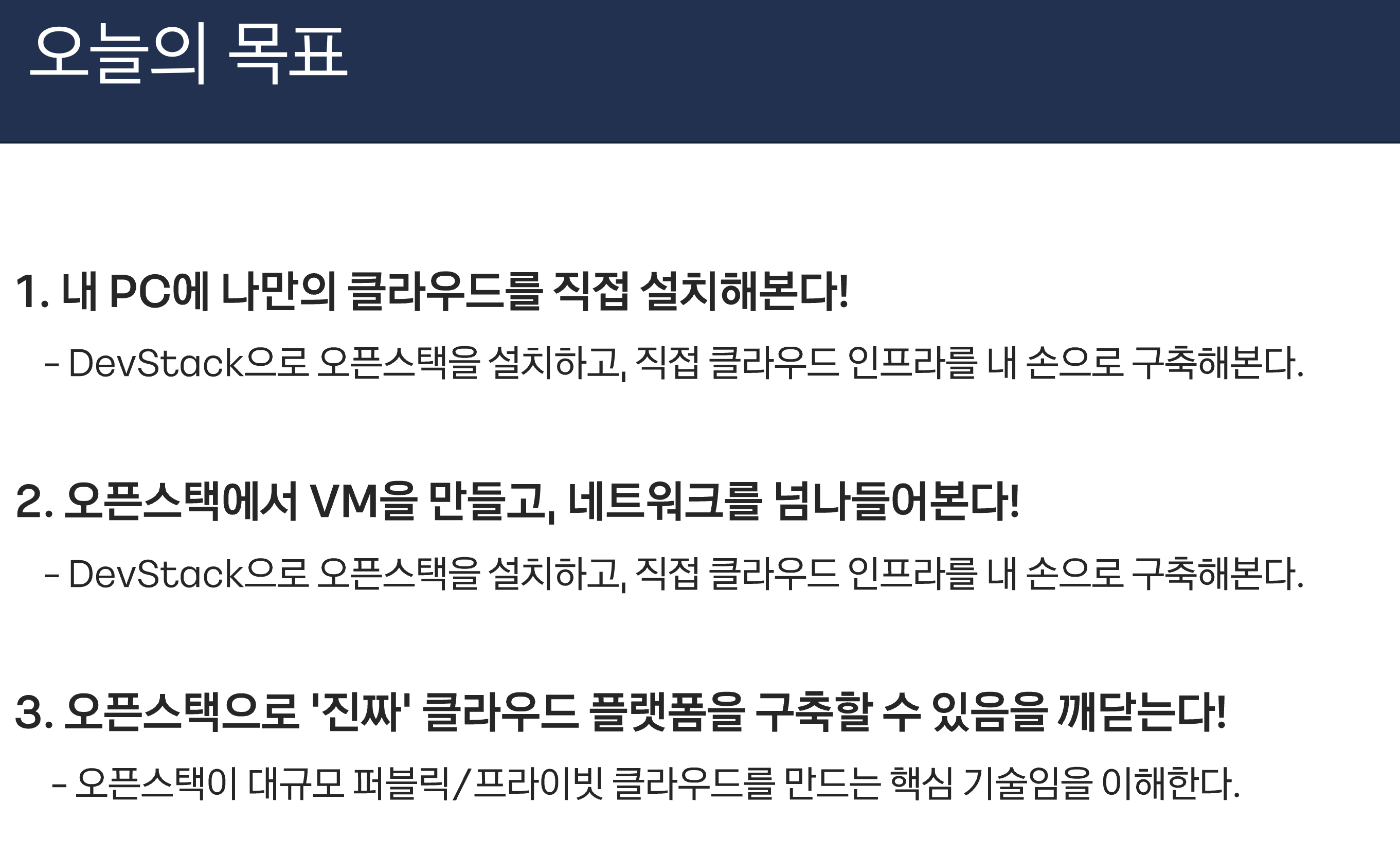 이번 강의는 OpenStack을 처음 접하는 학생들을 대상으로,