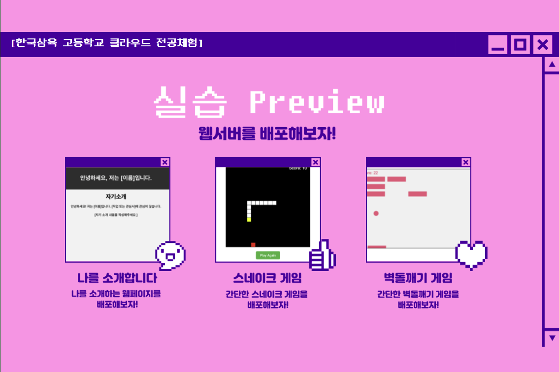 학생들에게 클라우드 전공에 대해서 설명하고, 간단하게 체험할 수 있도록 프로그램을 기획해야 했다.