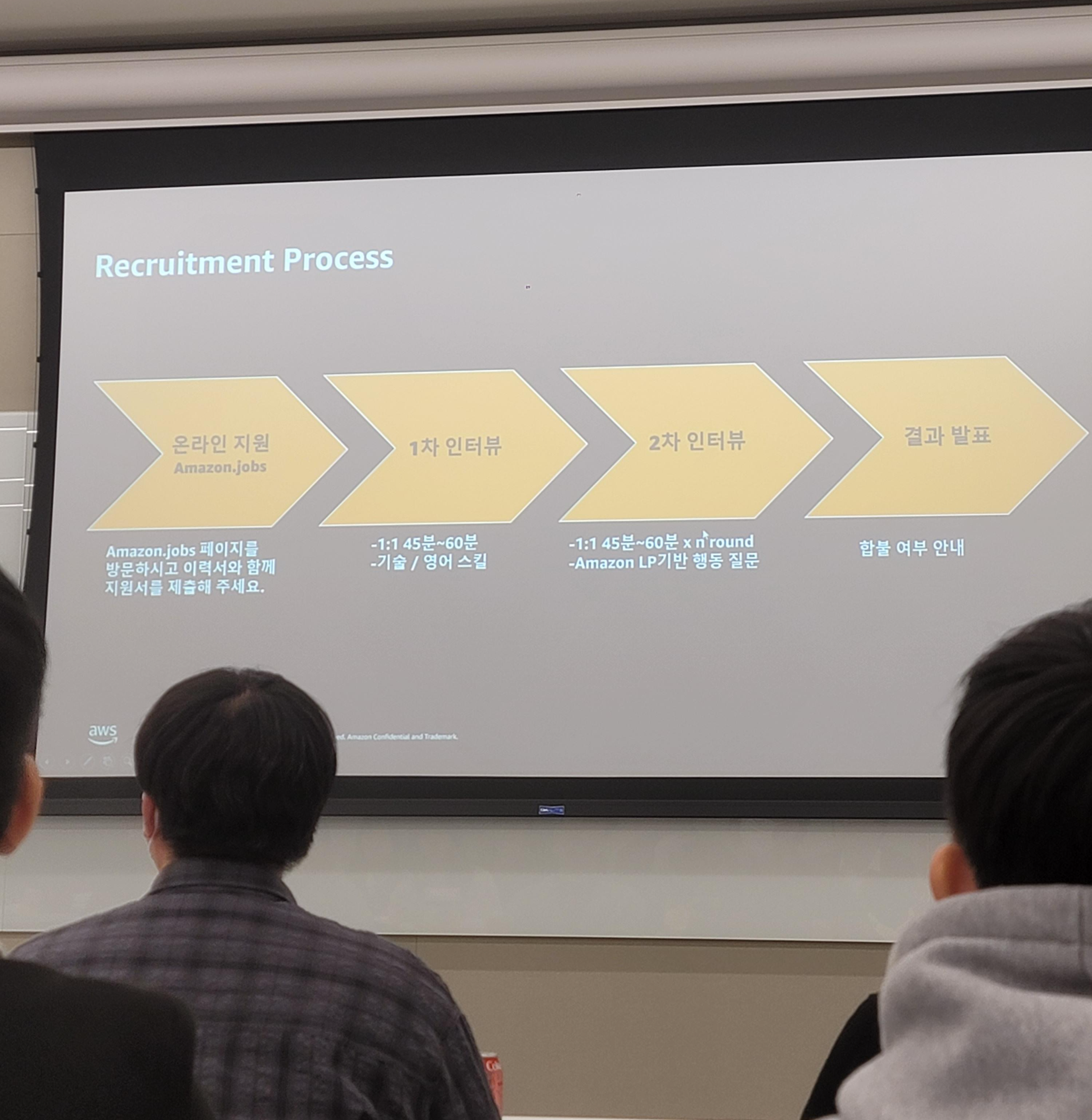 AWS의 채용 프로세스에 대해서 설명해주셨다.