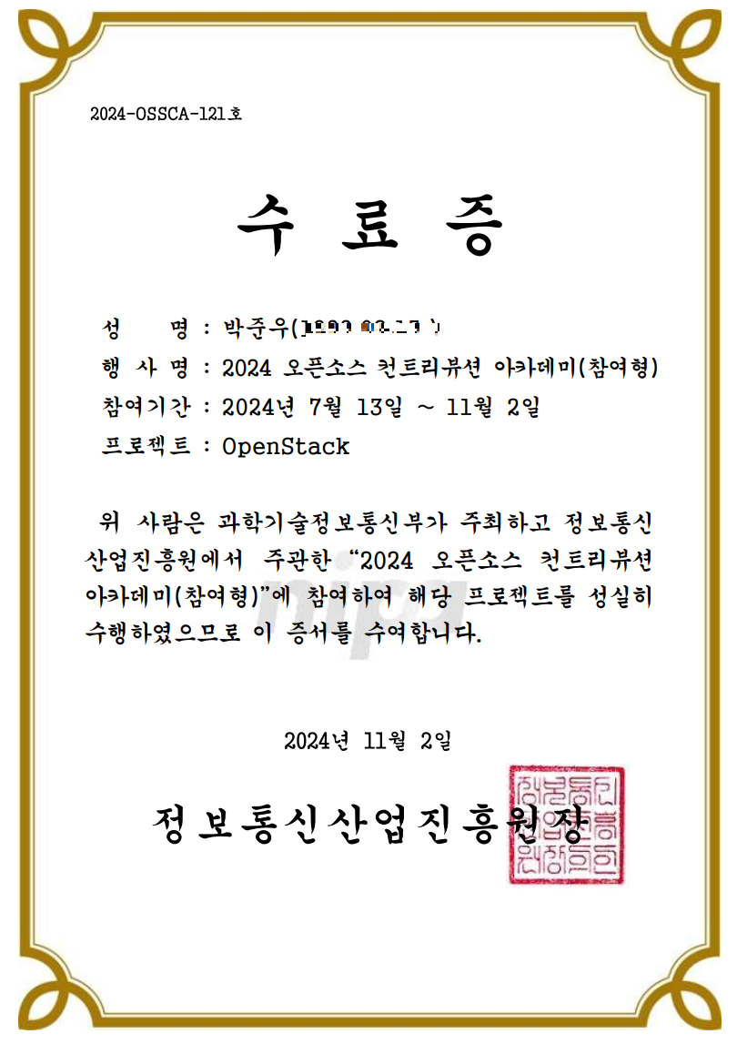 2024.7~11 오픈소스 컨트리뷰션 아카데미 : 오픈스택 팀 참여 후기